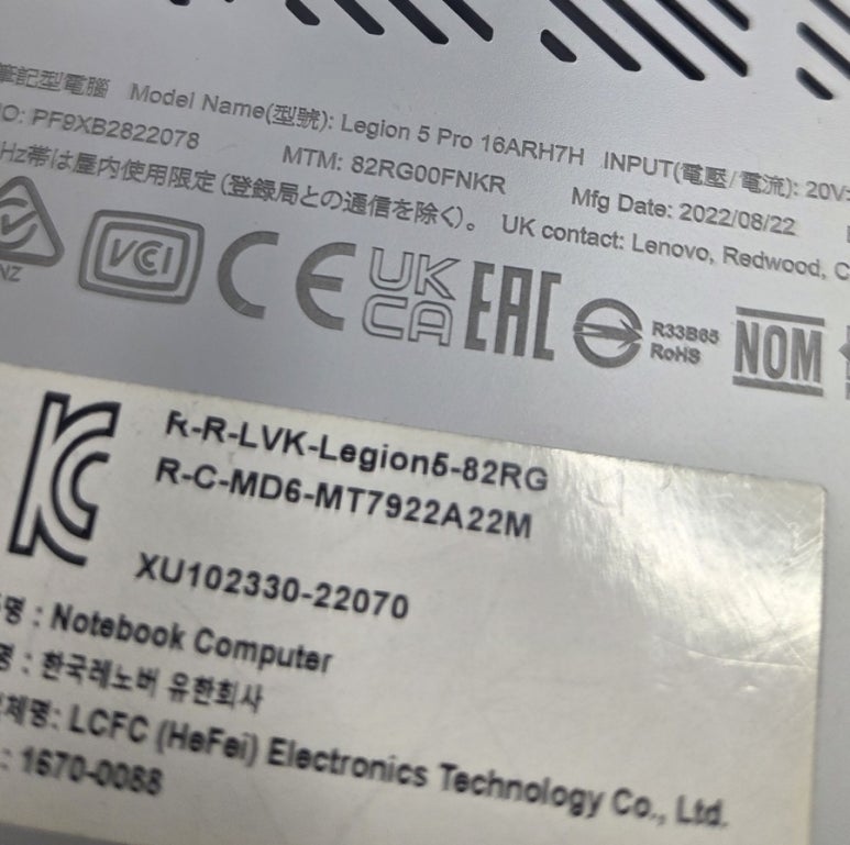 레노버 리전 (Lenovo legion 5 Pro 16ARH7H) 노트북이 충전불량(충전 외 모든작동 정상) 으로 입고 되었습니다.